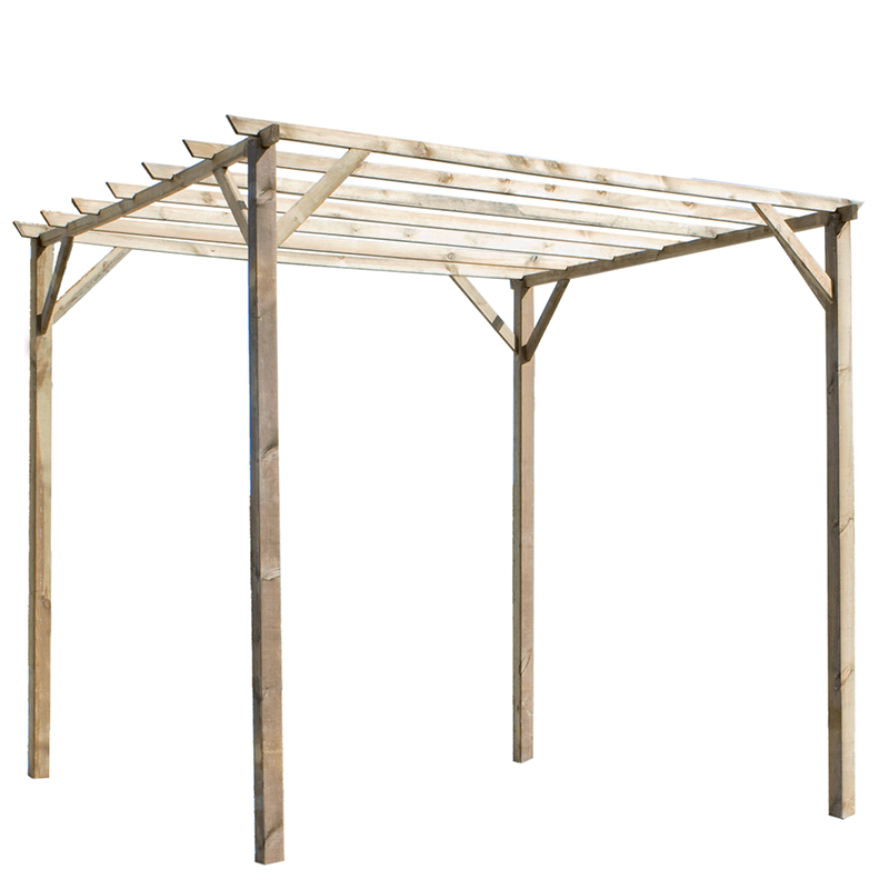 Quadratische Pergola aus nordischer Kiefer 1. Wahl, ideal zur Gestaltung eines schattigen und einladenden Bereichs im Garten, auf der Terrasse oder dem Patio. Robuste Struktur, sorgfältige Verarbeitung und einfache Montage.