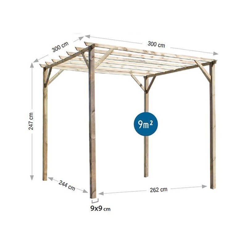 Pergola aus Holz für den Garten 3 × 3 m – Pfosten 9×9 cm