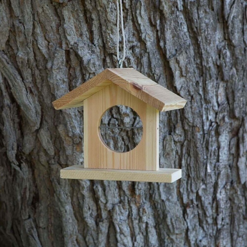 Mangiatoia che assicura cibo e riparo agli uccelli selvatici. In legno di abete da posizionale all'esterno e legare agli alberi del giardino grazie alla corda di cui è fornita. Realizzata in legno proveniente da foreste gestite in modo responsabile, presenta parti verniciate con colori atossici.
