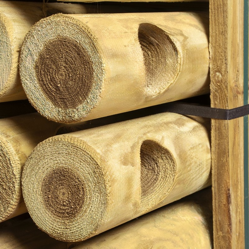 Palo tondo con fori Pino autoclave ø 120x1500 mm con 2 fori da 83 mm