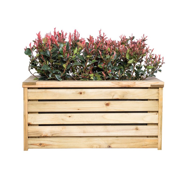 Outdoor rectangular planter made from first-choice solid pine wood, pressure-treated in autoclave Class 3, designed for use in outdoor environments. A compact, sturdy and elegant solution, ideal for gardens, terraces, balconies and outdoor spaces.