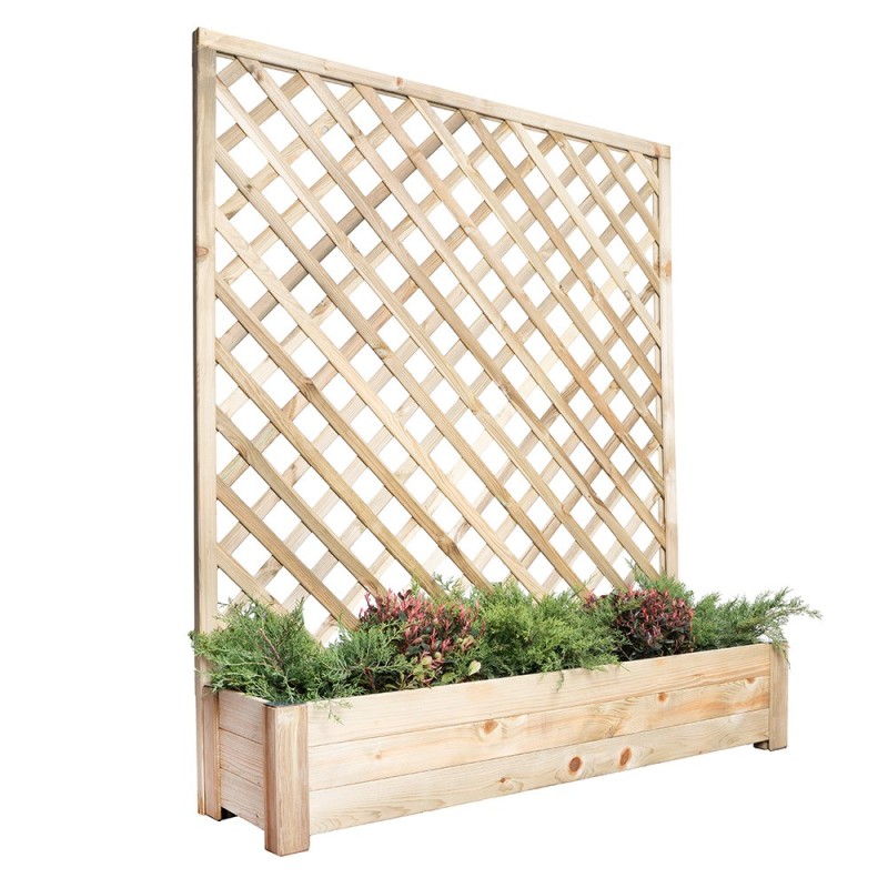 Made of high-grade pine wood, the planter features a planed finish that gives it a refined and natural look. The walls of the planter have a thickness of 1.8 cm, ensuring robustness and durability over time. Furthermore, the wood is treated in a class 3 autoclave, offering protection against atmospheric agents, insects and mould. This treatment guarantees optimal resistance to external elements, prolonging the life of the product.